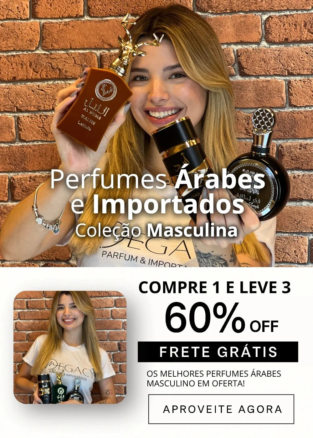 Na Loja Megacy, oferecemos perfumes exclusivos e de alta qualidade para quem busca se destacar. Com uma seleção cuidadosa de fragrâncias premium, garantimos que você encontre o perfume perfeito para sua personalidade e estilo. Nossa missão é proporcionar uma experiência de compra segura, prática e acessível, para que você se sinta único a cada spray.